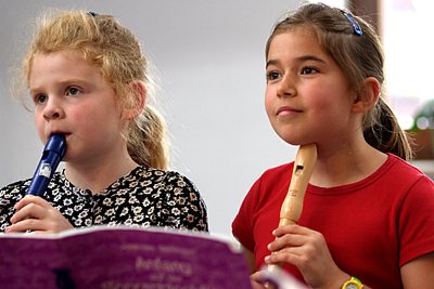 Im Anschluss an die Musikalische Früherziehung, aber auch ohne Vorkenntnisse, können Kinder im Gruppenunterricht (ca. fünf Kinder, nach Möglichkeit gleichen Alters) einen Flötenkurs belegen. Die Blockflöte erweist sich dabei als sehr geeignetes Instrument zum Einstieg ins aktive Musizieren.