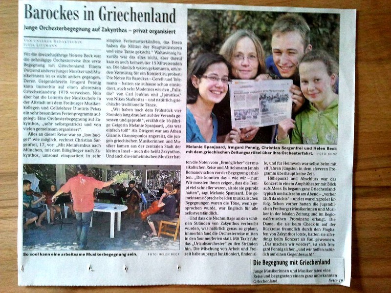 Ein Teil unseres Jugendorchesters war im Rahmen eines selbstorganisierten Projektes vom 1. - 10. August 2013 auf der griechischen Insel Zakynthos, um dort gemeinsam mit griechischen Schülern zu musizieren.